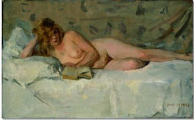 Lezend naakt (Sjaantje van Ingen) van Isaac Israëls