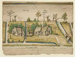 Land omringd en doorsneden door water, bron: Regionaal Archief, Leiden