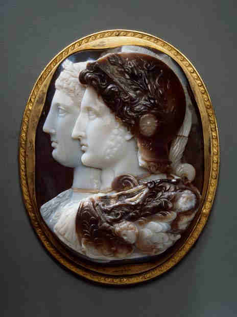 Afbeelding rechts: ‘Gonzaga-camee’, 3de eeuw v.Chr. Drielagig sardonyx, 15,7 x 11,8 cm, State Hermitage Museum, St Petersburg