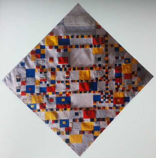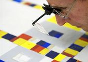 Afbeelding 4: Strijklichtfoto van Victory Boogie Woogie met van linksonder invallend licht. Archief Gemeentemuseum Den Haag. Foto door Rene Gerritsen Fotografie, 1998.