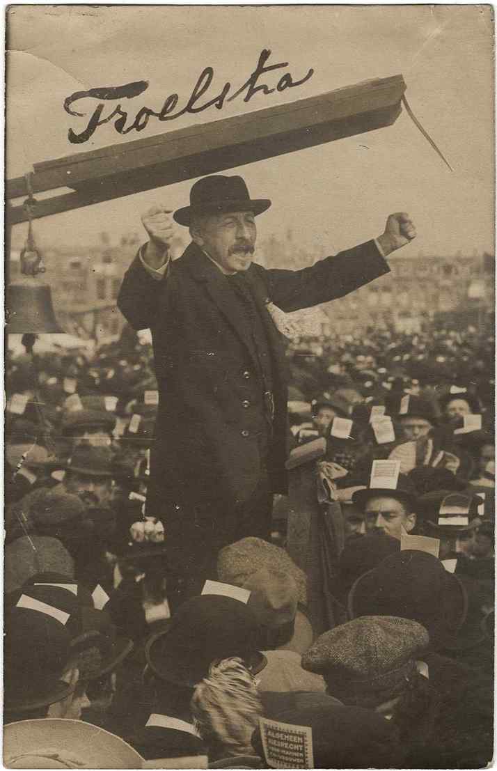 Pieter Jelles Troelstra op een demonstratie voor algemeen kiesrecht in Den Haag in 1912. De foto wordt vaak gebruikt als het gaat om de revolutiepoging van 1918. (Foto C. Leenheer/IISG)
