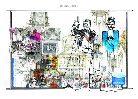 Ik realiseer me dat ik nog niet verteld heb wat ik in het begin van het project realiseerde: Willem I en Willen II kennen we van prenten en tekeningen. Van Willem III zijn foto's, van Wilhelmina zijn bewegende beelden, Juliana was een televisiekoningin en Beatrix wordt gevormd door beeldtaal waarin de computer niet is weg te denken. Nu Willen Alexander is aangetreden is de periode van de sociale media al een eind op streek. Als je je realiseert dat de beeldmiddelen in 200 jaar zijn veranderd en dat de veranderingen alleen maar sneller gaan, is de grote vraag waarop de leerlingen het antwoord gaan meemaken: Hoe wordt het beeld gevormd over 30 jaar?