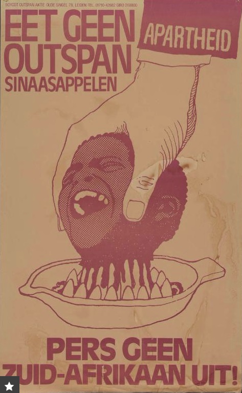 Eet geen Outspan sinaasappelen, pers geen Zuid-Afrikaan uit! Affiche uit 1972