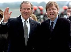 Met zijn Europese, anders globalistische en Derdewereld inzet lijkt hij mij de meest dynamische premier die we ooit gehad hebben. Maar ook hier moet hij soms klappen incasseren, dulden dat een 75 - jarige Giscard de leiding kreeg van de Europese conventie en zich verzette tegen het lidmaatschap van Turkije, meemaken dat hij niet welkom was in Porto Alegre omdat men hem onterecht beschouwde als liberaal van de harde lijn, ondervinden dat Chirac, Schröder, Blair apart vergaderen. Enkele persoonlijke bedenkingen: het verwondert me dat zijn ouders hem onderbrachten in het minuscule schooltje in de Van Monckhovenstraat: daar zal hij zeker niet veel hebben kunnen voetballen; ik stoor me soms aan het vele eten en drinken, zowel over dag als "s nachts, in peperdure restaurants, aan uitspraken zoals Geef hem een fiets en hij wil wereldkampioen worden", of als ik lees dat Paul Goossens, de revolutionair - linkse volksmenner in mijn Leuvense studententijd, nu Chevalier deed overlopen van SP naar VLD.