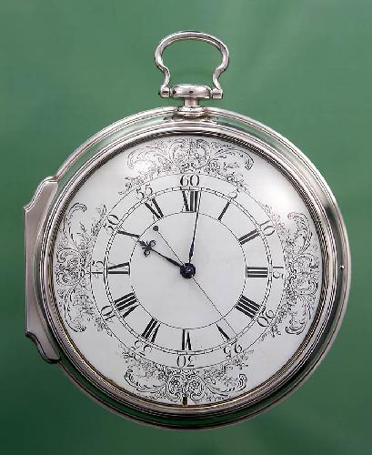 De definitieve Harrison-chronometer, H4, een wat groot uitgevallen zakhorloge, 13 cm diameter, met een gewicht van 1,45 kg.