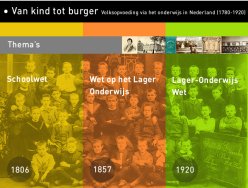 Het Nationaal Archief presenteert een nieuwe website voor het eindexamen HAVO en VWO in 2006 en 2007: Van kind tot burger,Volksopvoeding via het onderwijs in Nederland 1780-1920.