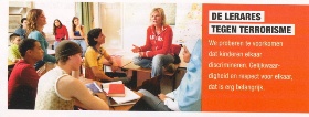 Dezelfde naïviteit en simpele voorstelling van zaken zit in “Wat wordt er gedaan tegen terrorisme?”. Zo zien we verschillende burgers in actie. Elk levert vanuit het eigen beroep een bijdrage aan de bestrijding van het kwaad. Er is een treinconducteur tegen terrorisme, een bewaker tegen terrorisme, een wetenschapper tegen terrorisme, een jongerenwerker tegen terrorisme, een brave burger tegen terrorisme (“mevrouw Berends”) en natuurlijk ook een lerares tegen terrorisme. Want het onderwijs heeft traditioneel tot taak alle kwalen van de samenleving te bestrijden.